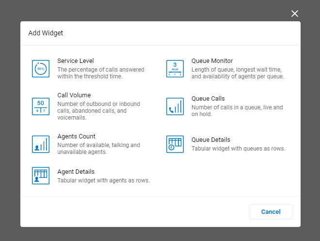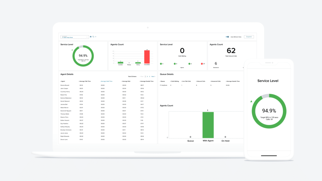 - See key data and KPIs such as service level, call volume, agent availability, and more